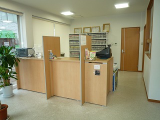 ガラス張りの明るいお店です。お車で来局の方は、北側のコインパーキングをご利用ください。駐車時間に応じて駐車券を発行しております。